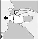 9. İnhalasyon cihazının ağzını açıp, cihazı ağzınıza kadar kaldırınız ve dudaklarınızı ağızlık parçasının çevresinde sıkıca kapayınız. Başınızı dik bir şekilde tutarak, yavaş ve derin bir nefes alınız; nefes alma hızınızı, kapsülün titreştiğini algılayacak şekilde ayarlayınız. Akciğerleriniz doluncaya kadar nefes alınız; nefesinizi sizi zorlamayacak bir süreyle tutunuz ve bu esnada inhalasyon cihazını ağzınızdan çıkarınız. Şimdi normal nefes alıp vermeye başlayabilirsiniz.