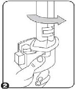 2. Inhalerin tabanını sıkıca tutup, ağızlığı ok yönünde döndürerek açınız.