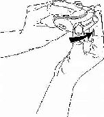 Diskus’u açmak için bir elinizle dış kapağı tutarken diğer elin baş parmağını baş parmak yerine koyunuz. Baş parmağınızı itebildiğiniz kadar, kendinizden uzağa itiniz.