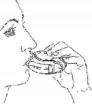 - Ağızlığı dudaklarınıza yaslayınız. Devamlı ve derin nefes alınız - nefesi burnunuzdan değil, Diskus’un içinden alınız.