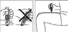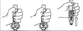 SmartJect kullanıma hazır kalemi elinizde rahat bir şekilde tutunuz. Düğmeye basmaksızın, SmartJect kullanıma hazır kalemin açık ucunu, 90 derecelik bir açıyla (dik olarak) sıkıca derinize bastırınız. Not:Bazı hastalar enjeksiyonu kolaylaştırmak için diğer eliyle enjeksiyon yapılacak bölgeyi sıkıştırarak tutarlar.
