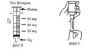 Tüm üniteyi (şişe ve şırınga) baş aşağı çeviriniz (Bkz. Şekil 3).