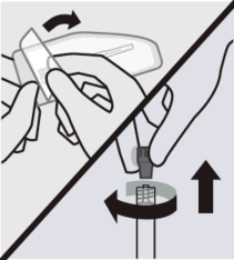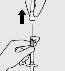 Daha sonra, enjektörü dik tutarak, lastik başlığı çevirin ve çekerek çıkartın.