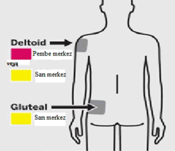Enjeksiyon, deltoid kasının merkezine uygulanmalıdır. Deltoid enjeksiyonları, iki deltoid kası arasında dönüşümlü olarak uygulanmalıdır.
