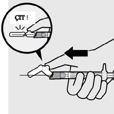 Çalkaladıktan hemen sonra bir sonraki adıma geçin. Enjeksiyondan önce 5 dakikadan fazla süre geçerse, ilacı yeniden süspanse etmek için enjektörü, ucu yukarı bakacak şekilde en az 15 saniye süreyle tekrar kuvvetlice