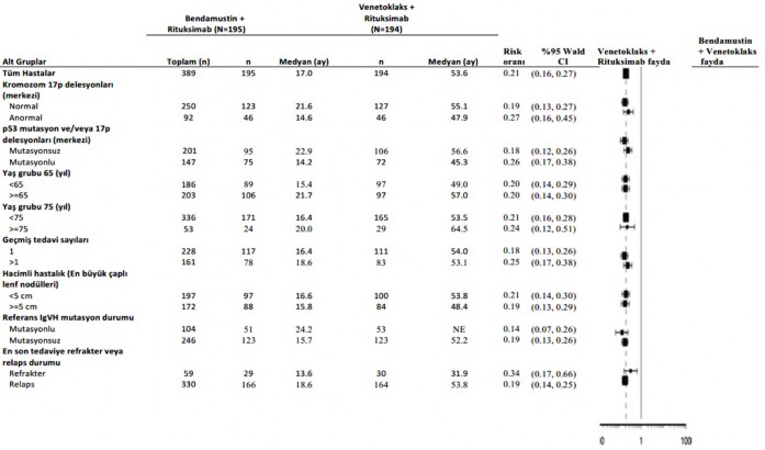 B-hücre reseptörü yolağı inhibitörü kullanmaya uygun olmayan veya B-hücre reseptörü yolağı inhibitörüne yanıt vermeyen 17p delesyonu ya da TP53 mutasyonu olan erişkin KLL/SLL hastalarının tedavisinde;