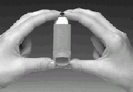 Diğer çocuklar veya güçsüz ellere sahip yetişkinler için inhaleri iki elle tutarak kullanmak daha kolay olabilir. Bunun için iki işaret parmağınızı inhalerin tepesine, iki baş parmağınızı da ağızlığın altına koyunuz.