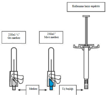 Kit, intramüsküler enjeksiyon için kullanıma hazır enjektör ve 2 güvenlik iğnesi içerir.