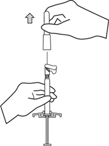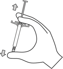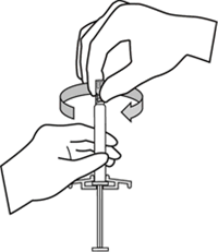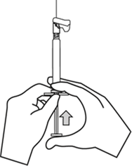 Havasını gidermek için, takılmış olan iğne ile birlikte enjektörü dik pozisyona getiriniz. Piston çubuğunu dikkatli bir şekilde ileri iterek enjektörün havasını gideriniz.
