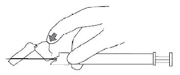 6. Havasını gidermek için, takılmış olan iğne ile birlikte enjektörü dik pozisyona getiriniz. Piston çubuğunu dikkatli bir şekilde ileri iterek enjektörün havasını gideriniz.