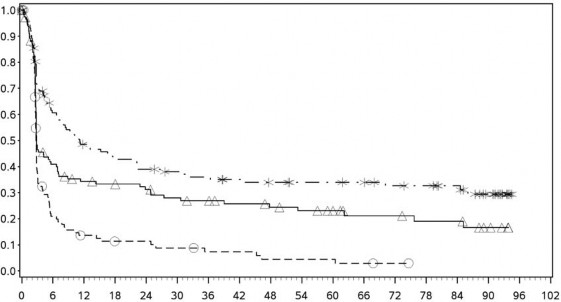 Medyan (ay) (%95 GA) | (7,16-14,59) | (5,59-7,13) | (8,31-NA) | (2,79-7,03) |