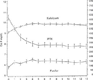 Kalsiyum x Fosfor urünu | Parikalsitol (n=40) | 54 (32-106) | + 7.9 (2.2) |